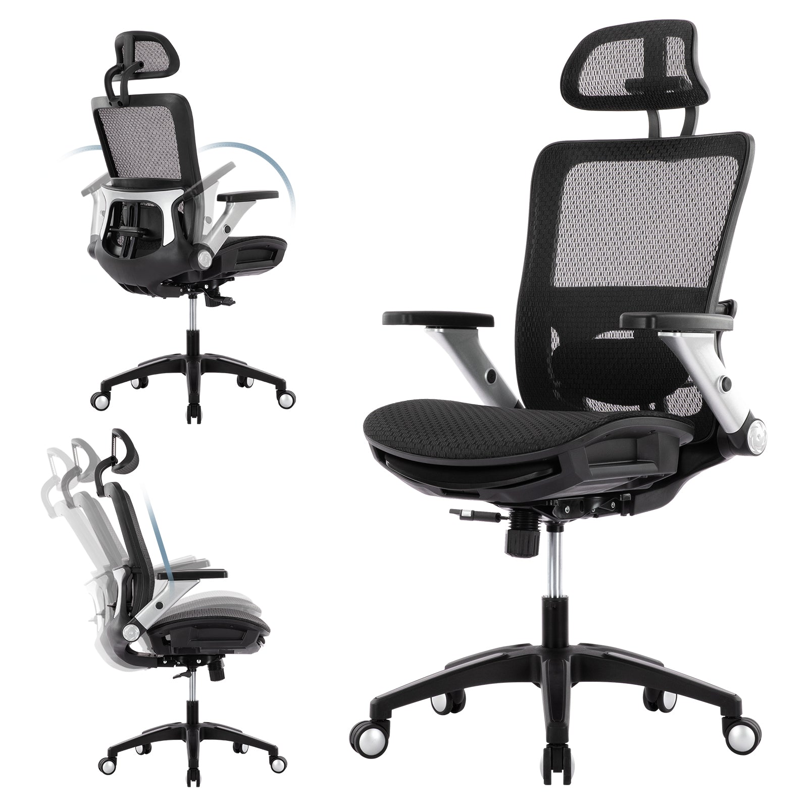 MALOL Ergonomic Mesh Office Chair with Footrest,Headrest,Lumbar Support,Adjustable Tilt Lock and 4D Flip-up Armrests£¬High Back Computer Chair2577F-Black
